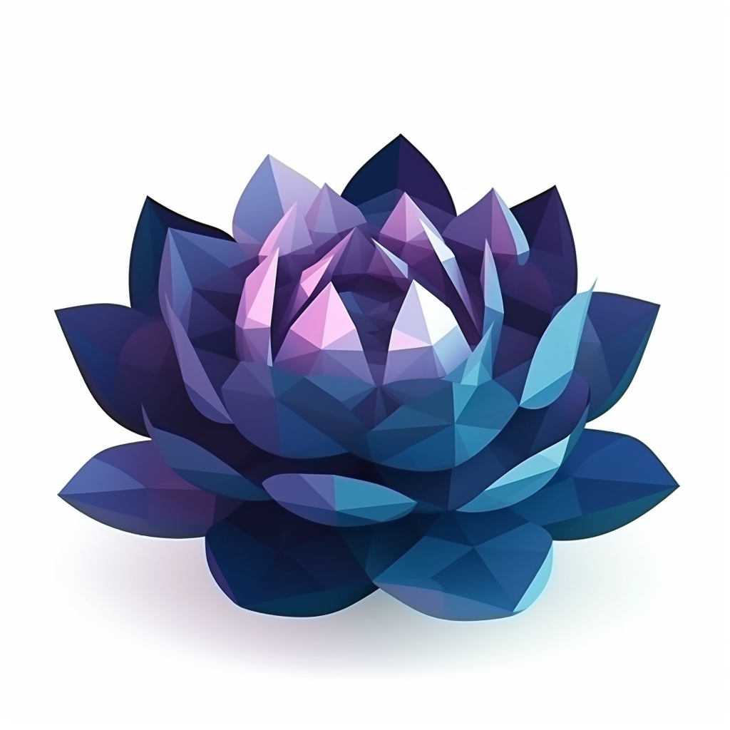 /image lotus flower icon, centered, white background, indigo, vector, facets, abstract, low poly