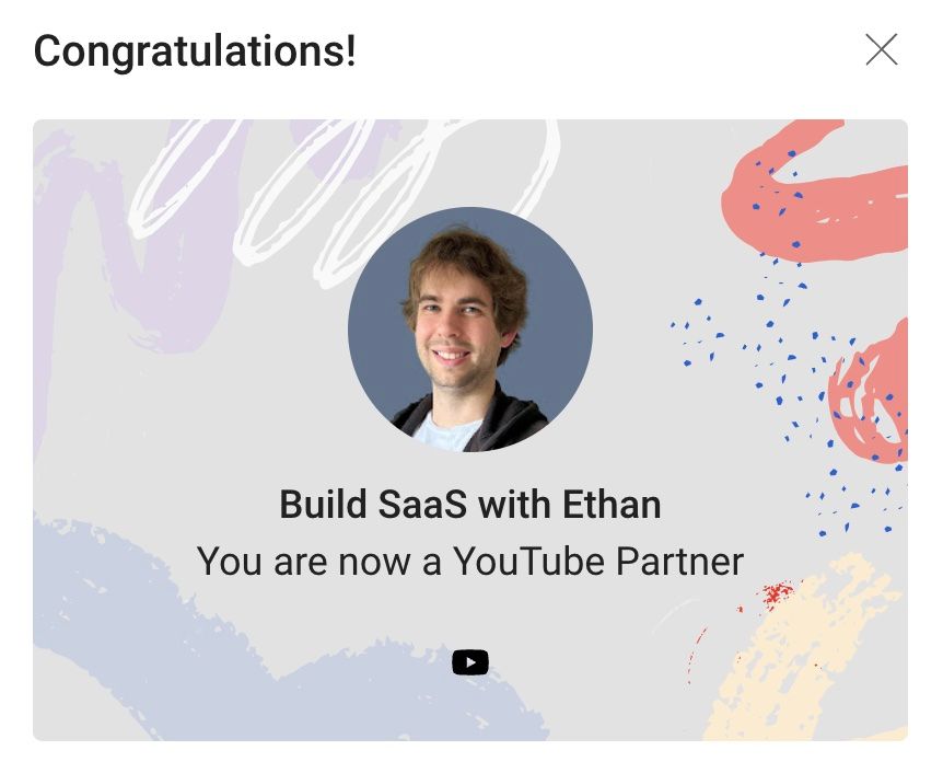 It's a huge milestone for me, and I'm very excited to have made it. I don't think the money coming from YouTube is going to be meaningful for a long time, but the idea that my content will slowly make money is fantastic.